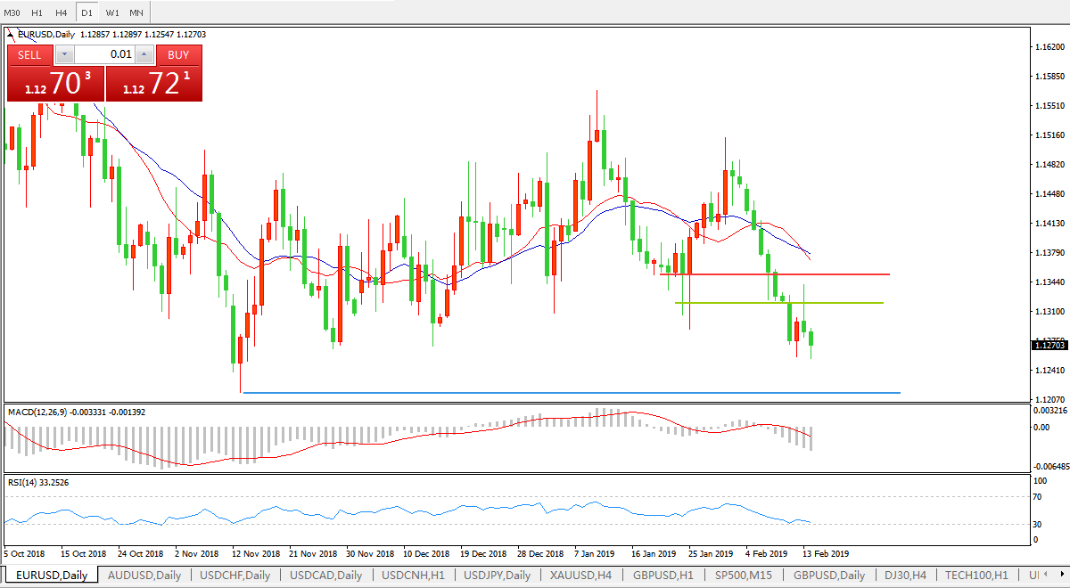 基本面分析:比利时联合银行分析师指出,欧元兑美元未能跌破1.1270区域,他们正在寻找一些有力的触底信号;欧元持续反弹可能需要解决一些全球贸易和欧盟的政治事件风险,以及更令人欣慰的欧盟经济数据,这个条件目前还没有满足,我们在寻找更令人信服的触底迹象,欧元兑美元1.1216(11月低位)低位仍是下一个重要支撑位。