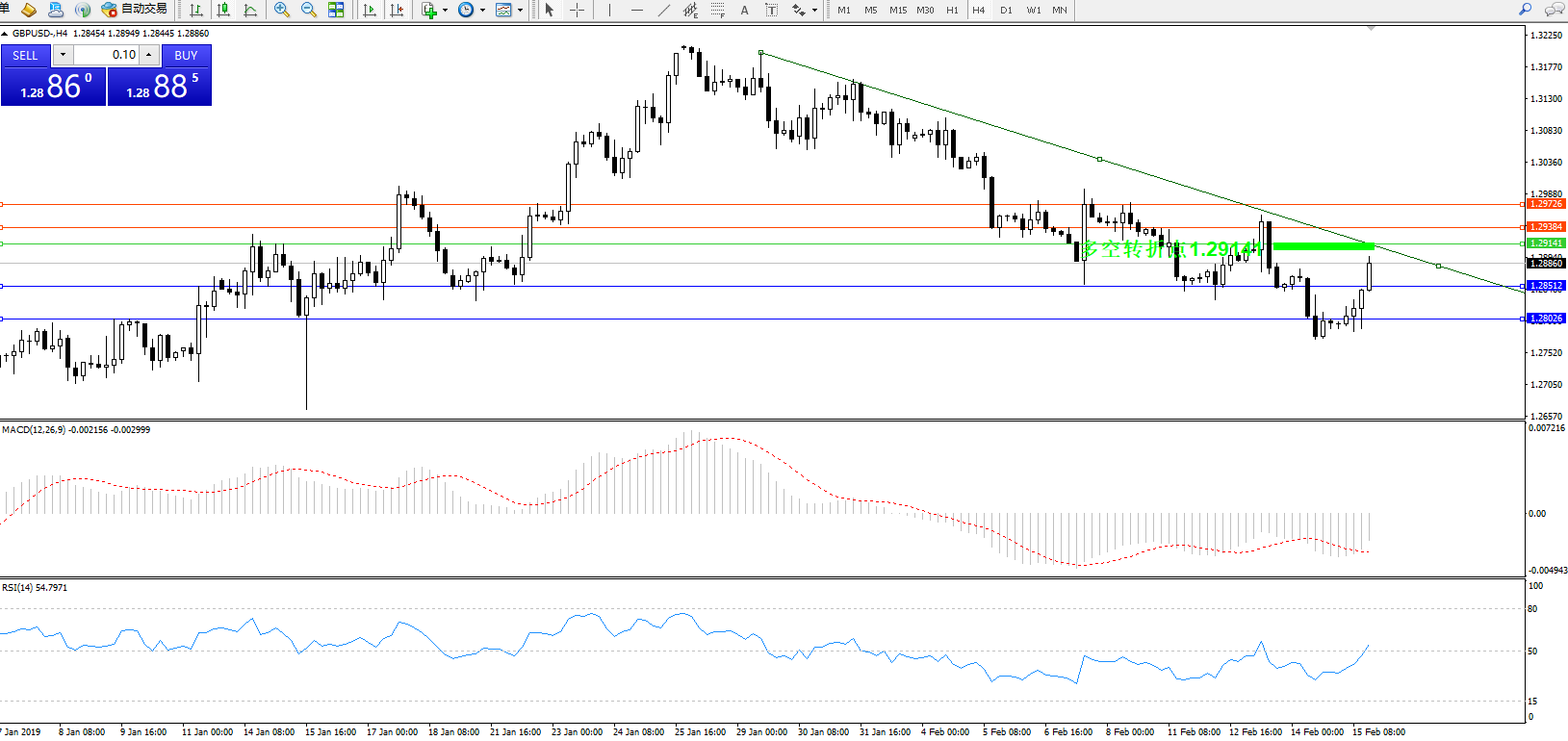 英镑美元GBPUSD ——4小时K线图显示: