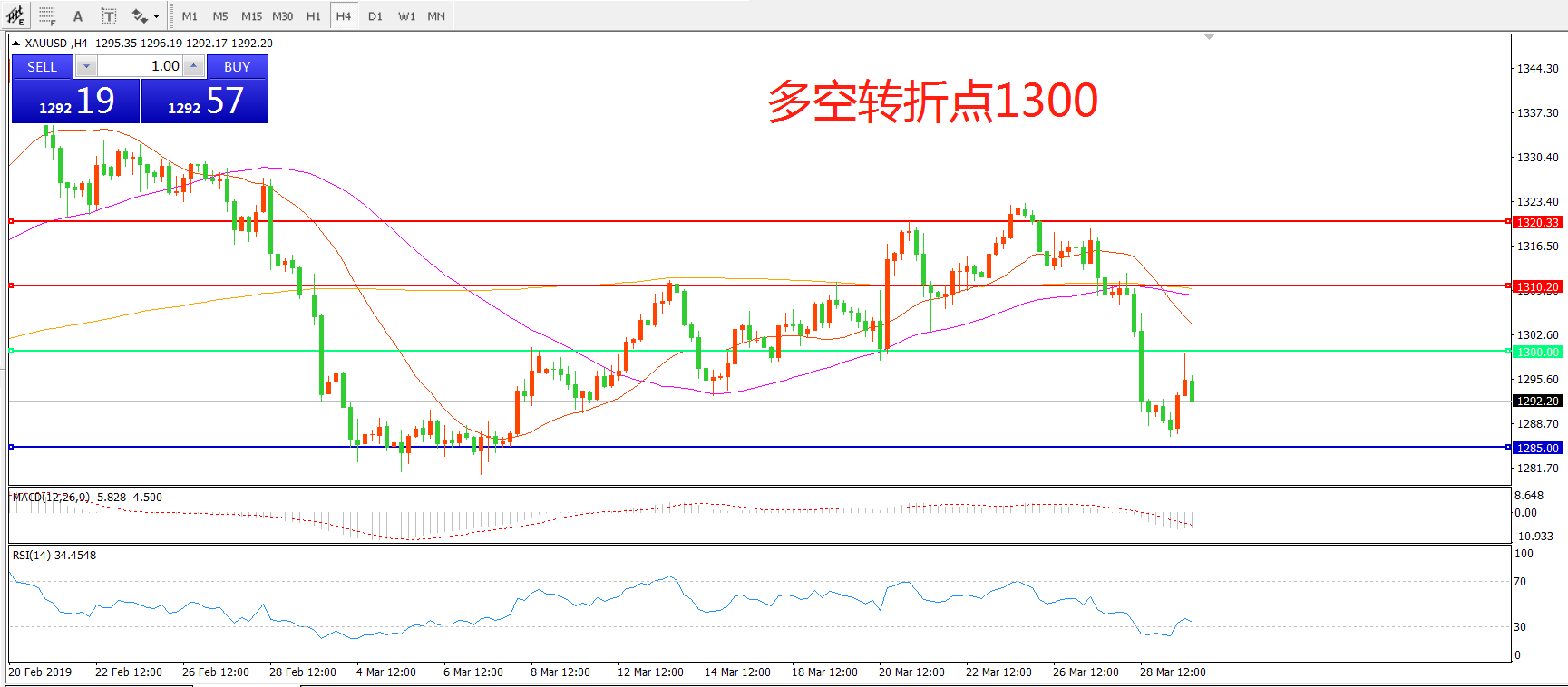 多空转折点:1300.00