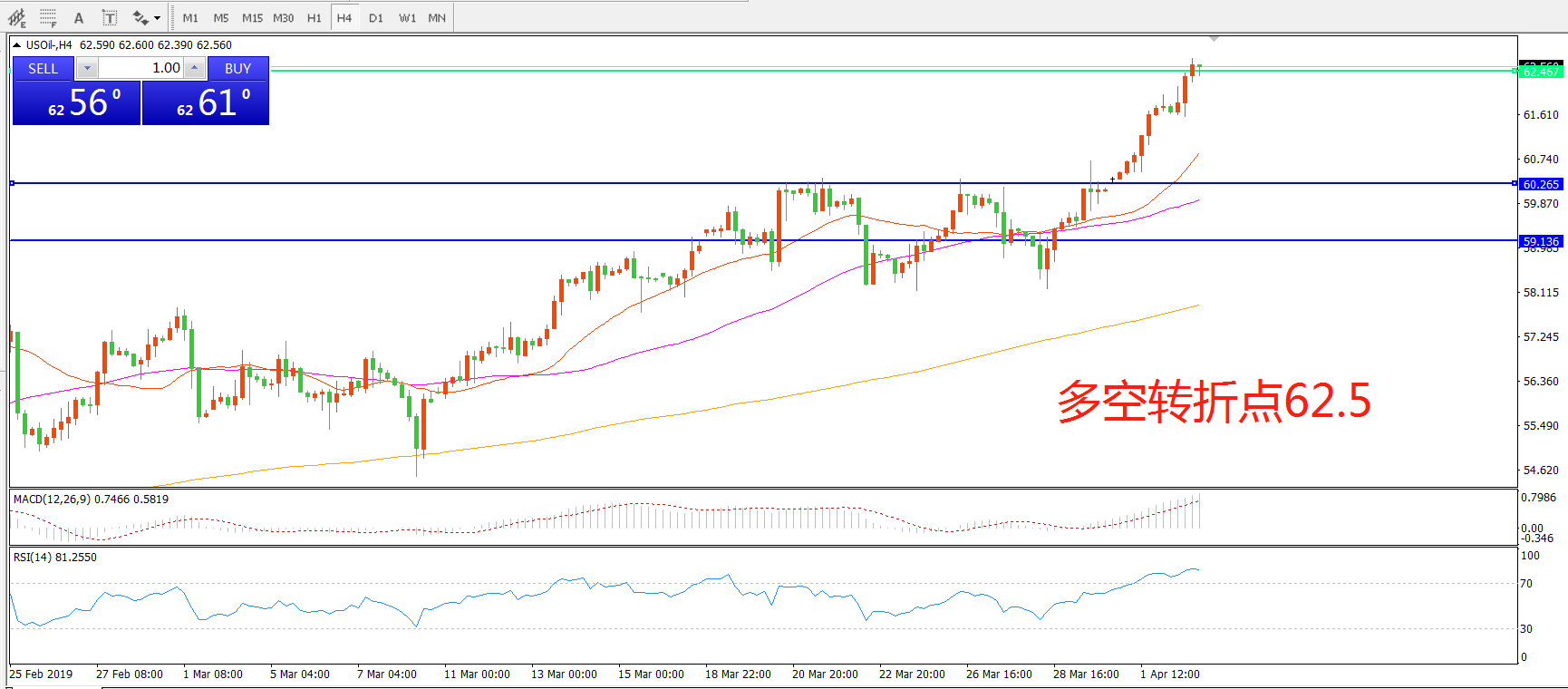 交易策略:在62.50之上看涨,目标64.50     66.50