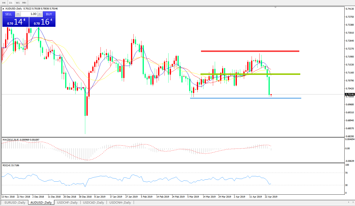 交易策略:在0.7110之下,看跌,目标价位为0.7000,然后为0.6920。