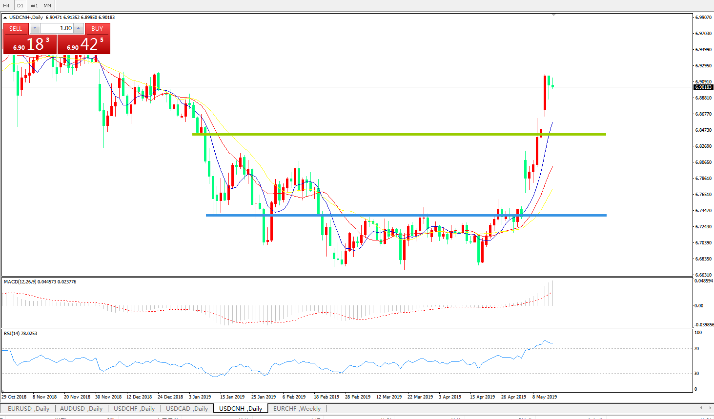 技术面简析:日线均线呈有序多头排列看多,MACD0轴上方运行且动能柱0轴上方快速放量RSI快速走升后超买区域小幅回落,汇价强力上攻后维持整理态势,预计短期汇价有进一步上行空间,重点关注中美贸易争端后续进展