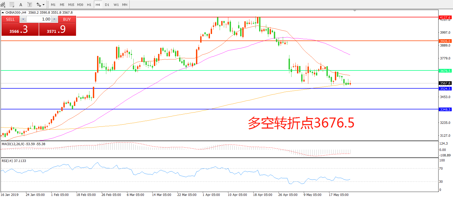 沪深300指数CHINA300 4小时图