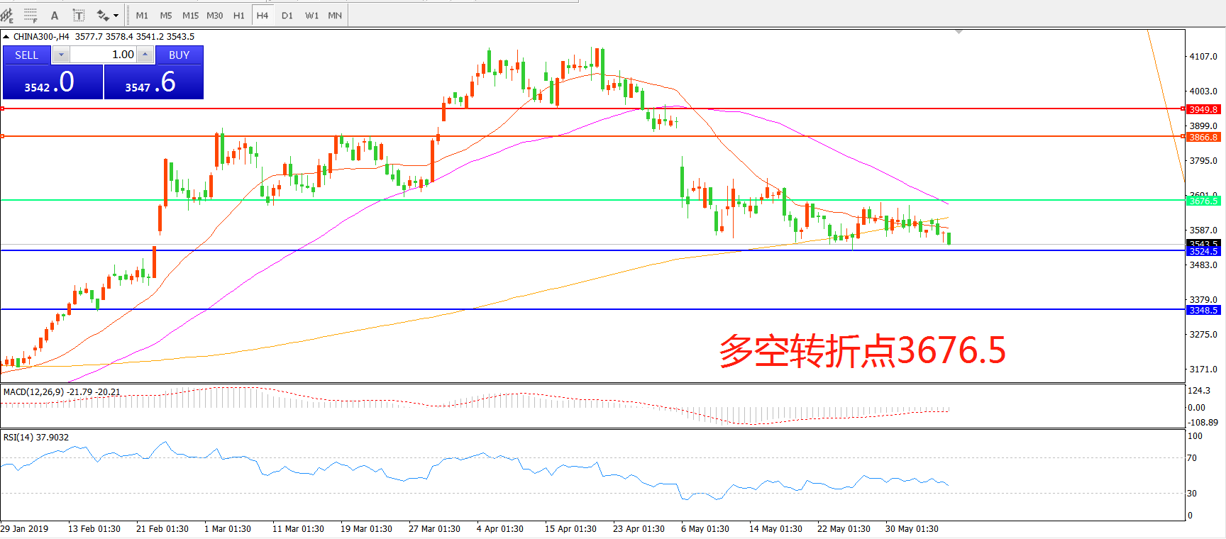 沪深300指数CHINA300 4小时图