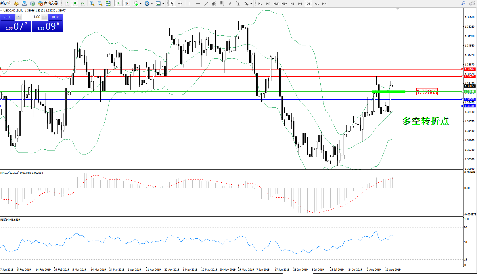 交易策略:1.32865上方看涨,目标1.33423、1.33687