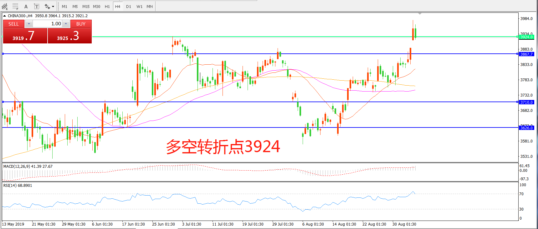 多空转折点:3924.00