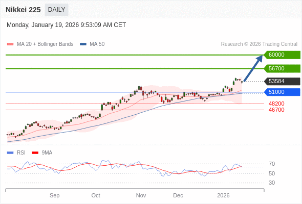 Nikkei 225 短线: 目标位为56700。