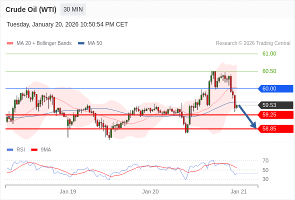 交易策略: 在 60.00 之下,看跌,目标价位为 59.25 ,然后为 58.85 。
