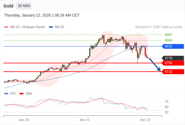 在 4833 之下,看跌,目标价位为 4755 ,然后为 4715 。