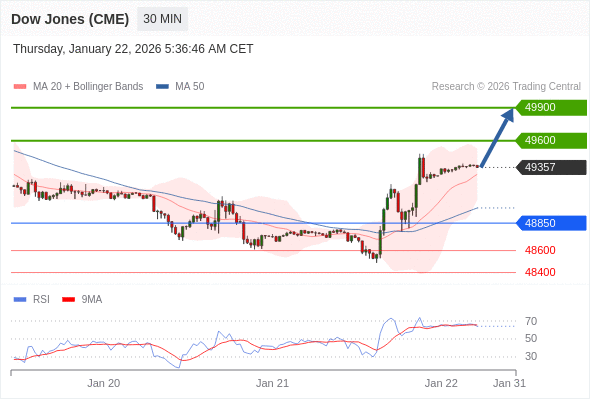 在 48850 之上,看涨,目标价位为 49600 ,然后为 49900 。