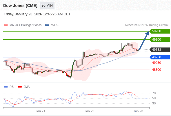 在 49260 之上,看涨,目标价位为 49900 ,然后为 50200 。