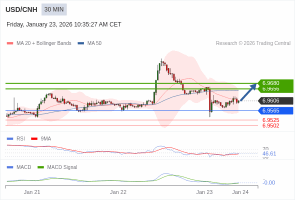 替代方案: 在6.9565以下,期待6.9525和6.9502。
