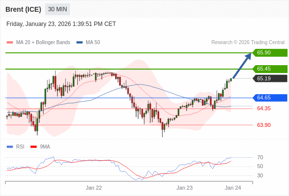 在 64.65 之上,看涨,目标价位为 65.45 ,然后为 65.90 。