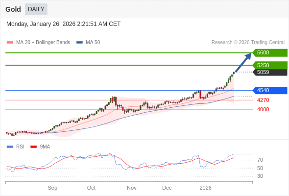 在 4540 之上,看涨,目标价位为 5250 ,然后为 5600 。