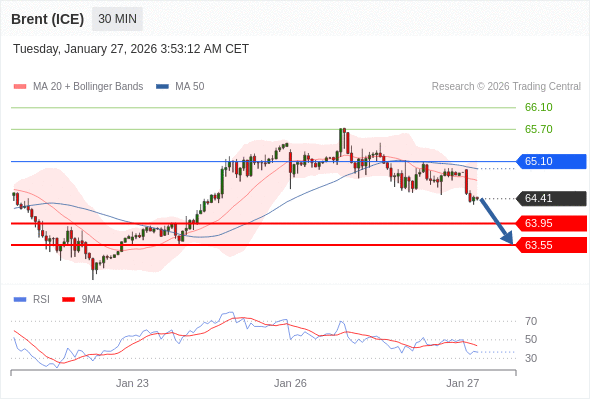 在 65.10 之下,看跌,目标价位为 63.95 ,然后为 63.55 。