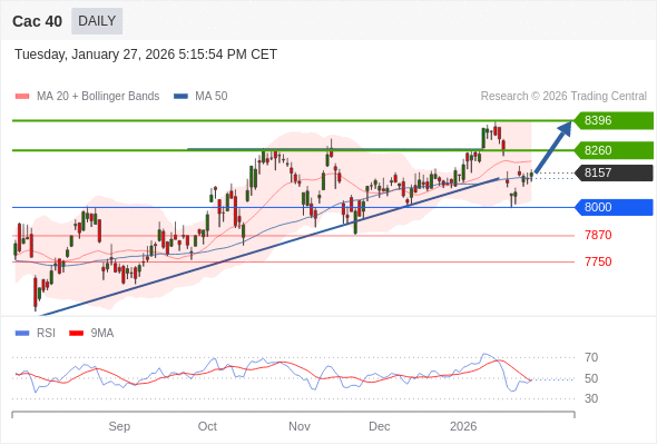 交易策略: 在 8000 之上,看涨,目标价位为 8260 ,然后为 8396 。