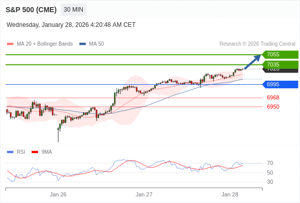 在 6995 之上,看涨,目标价位为 7035 ,然后为 7055 。