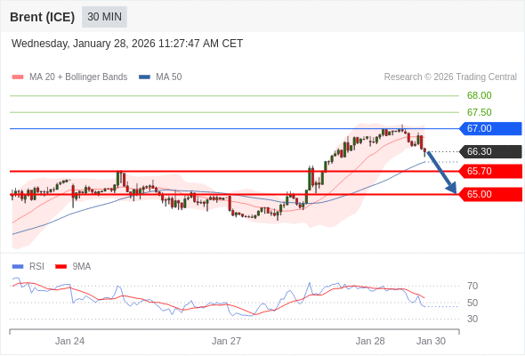 交易策略: 在 67.00 之下,看跌,目标价位为 65.70 ,然后为 65.00 。