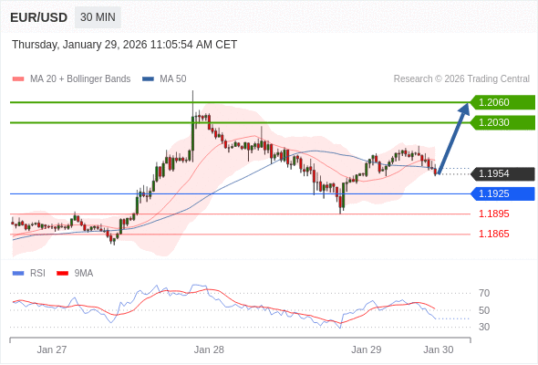 在 1.1925 之上,看涨,目标价位为 1.2030 ,然后为 1.2060 。