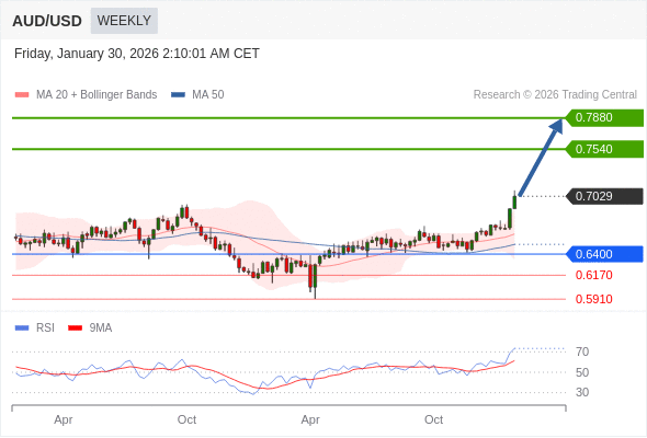 在 0.6400 之上,看涨,目标价位为 0.7540 ,然后为 0.7880 。