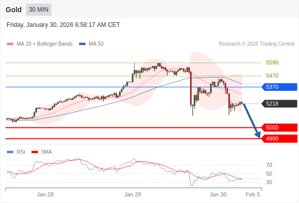 在 5370 之下,看跌,目标价位为 5000 ,然后为 4900 。