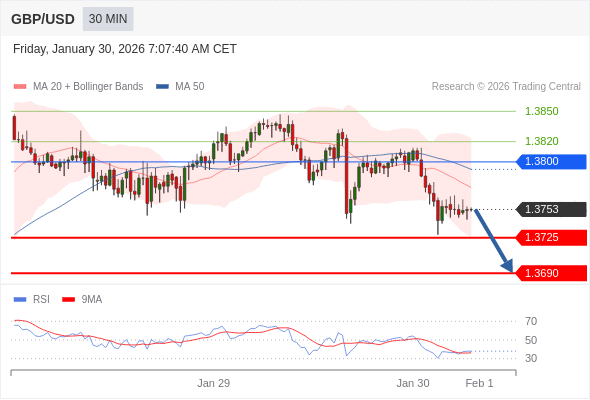 交易策略: 在 1.3800 之下,看跌,目标价位为 1.3725 ,然后为 1.3690 。