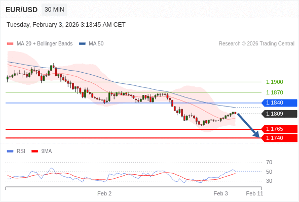 交易策略: 在 1.1840 之下,看跌,目标价位为 1.1765 ,然后为 1.1740 。
