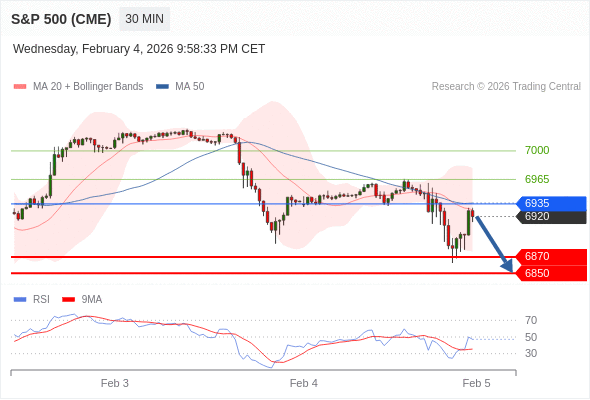 交易策略: 在 6935 之下,看跌,目标价位为 6870 ,然后为 6850 。