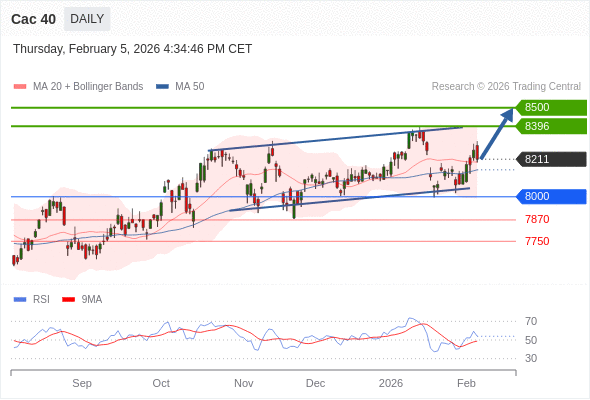 Cac 40 短线: 看涨。