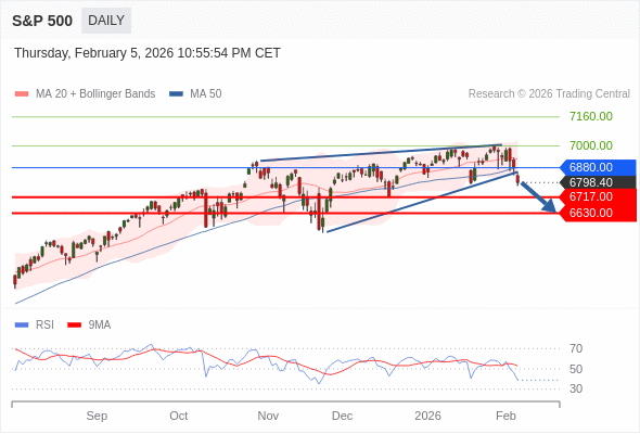 交易策略: 在 6880.00 之下,看跌,目标价位为 6717.00 ,然后为 6630.00 。