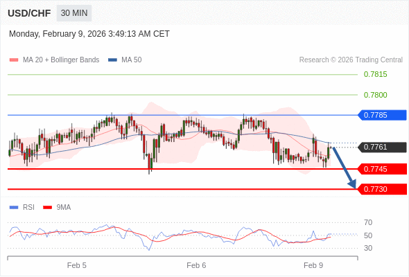 在 0.7785 之下,看跌,目标价位为 0.7745 ,然后为 0.7730 。