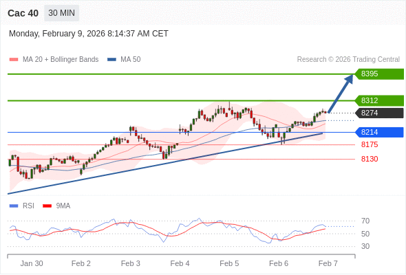 Cac 40 当日内: 期待8312。