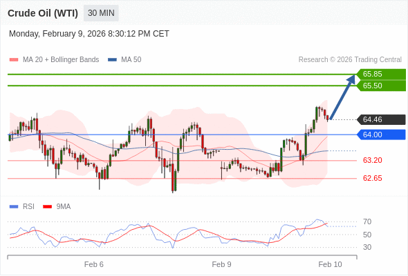 在 64.00 之上,看涨,目标价位为 65.50 ,然后为 65.85 。