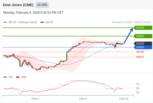 交易策略: 在 50000 之上,看涨,目标价位为 50600 ,然后为 51050 。