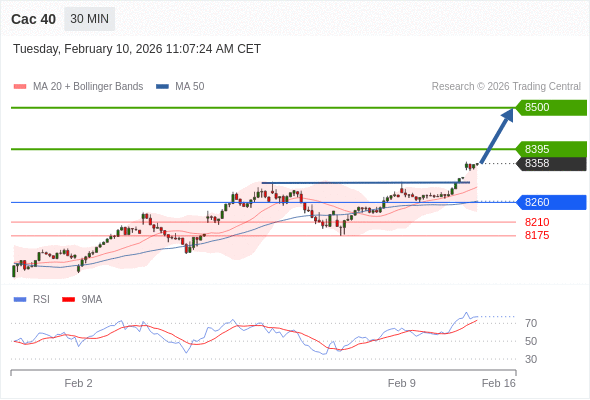 Cac 40 当日内: 进一步上涨。