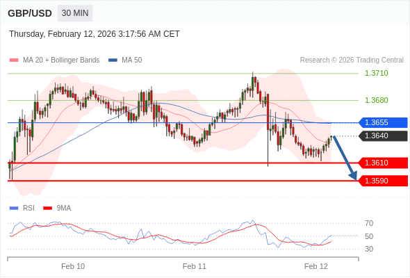 在 1.3655 之下,看跌,目标价位为 1.3610 ,然后为 1.3590 。