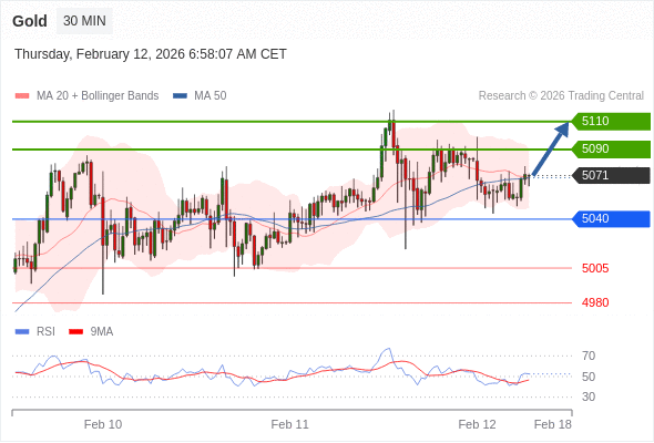 在 5040 之上,看涨,目标价位为 5090 ,然后为 5110 。