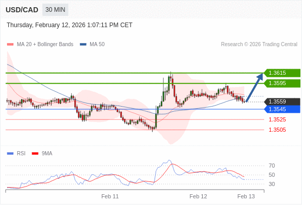 在 1.3545 之上,看涨,目标价位为 1.3595 ,然后为 1.3615 。
