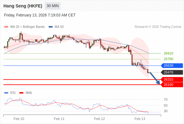 在 26630 之下,看跌,目标价位为 26310 ,然后为 26190 。