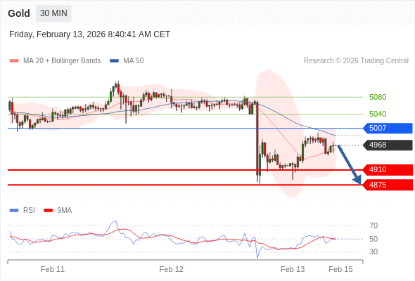 在 5007 之下,看跌,目标价位为 4910 ,然后为 4875 。
