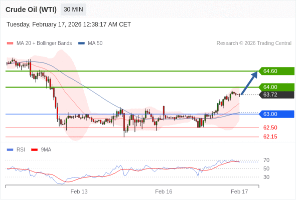 在 63.00 之上,看涨,目标价位为 64.00 ,然后为 64.60 。