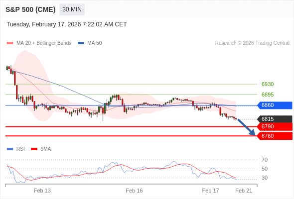 交易策略: 在 6860 之下,看跌,目标价位为 6790 ,然后为 6760 。