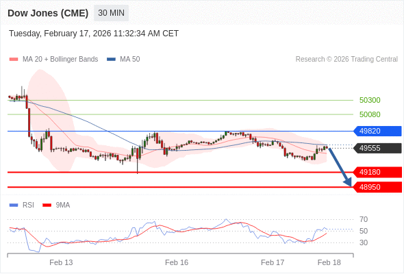 在 49820 之下,看跌,目标价位为 49180 ,然后为 48950 。