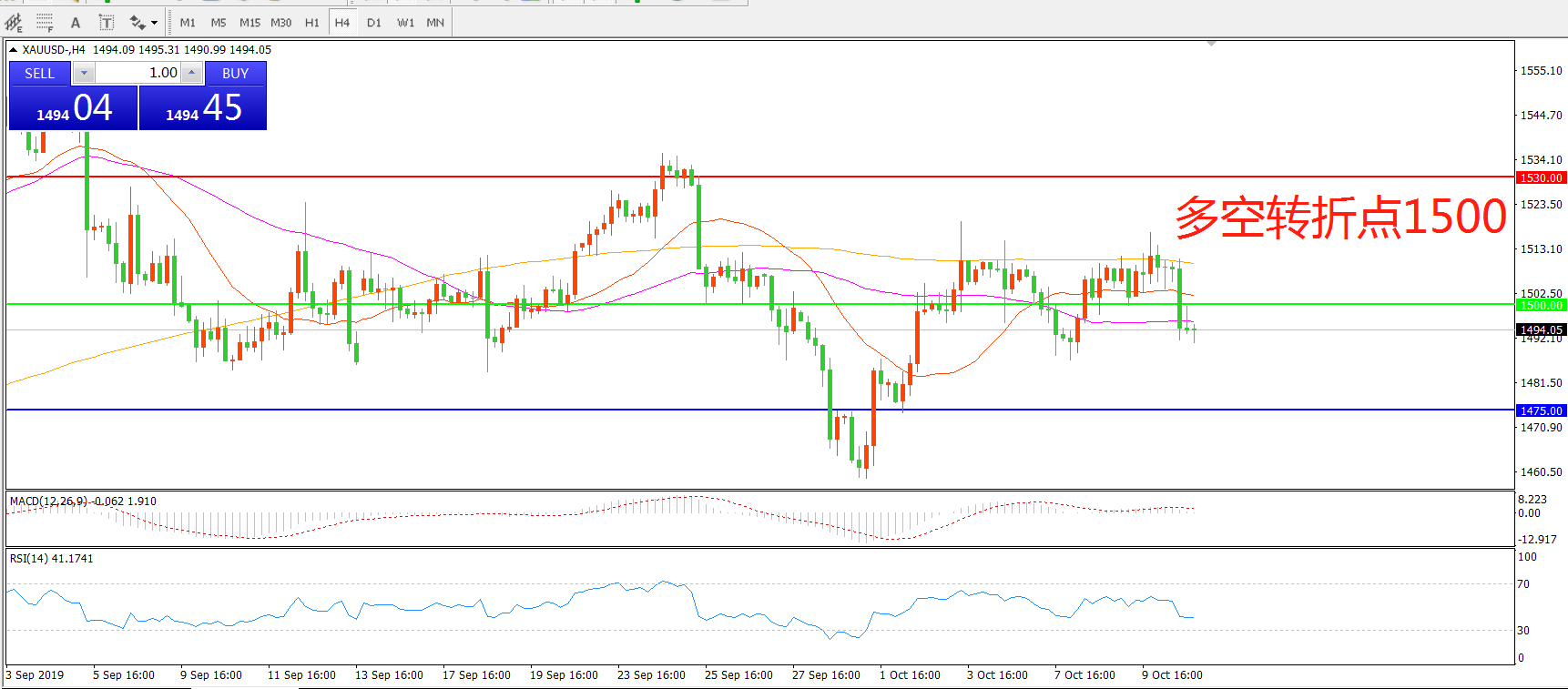 周四(10月10日),美国CPI数据基本符合预期,但市场更为关注的全球贸易局势却传来利好消息,打压了市场中避险情绪,现货黄金大跌18美元,收报1493.15美元/盎司,接下来,投资者还需要关注贸易局势的最新进展。
