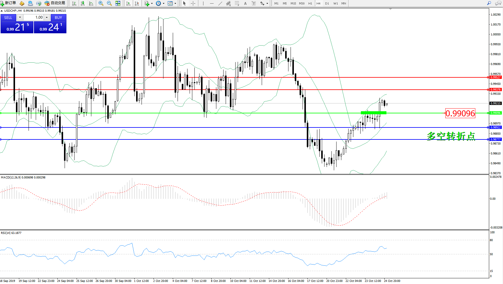 美元瑞郎USDCHF——4小时K线图显示:
