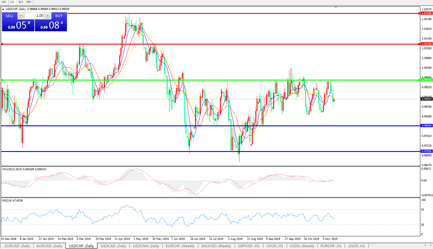 美元兑瑞郎USDCHF    日线