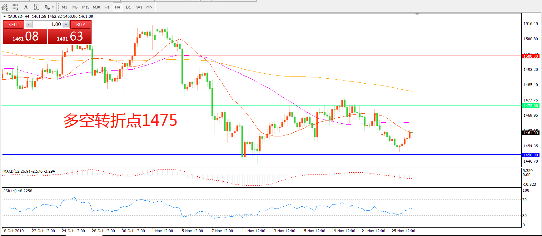 多空转折点:1475.00