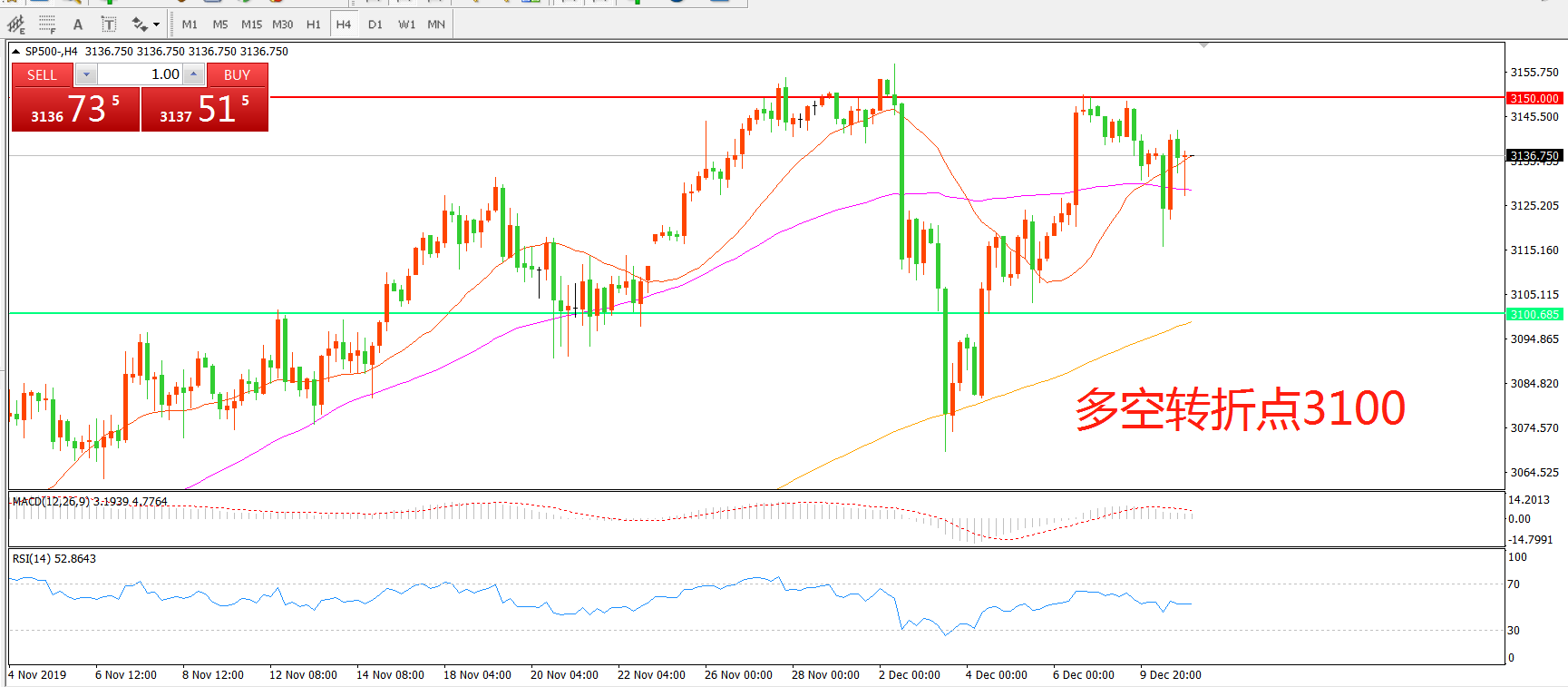 多空转折点:3100.00