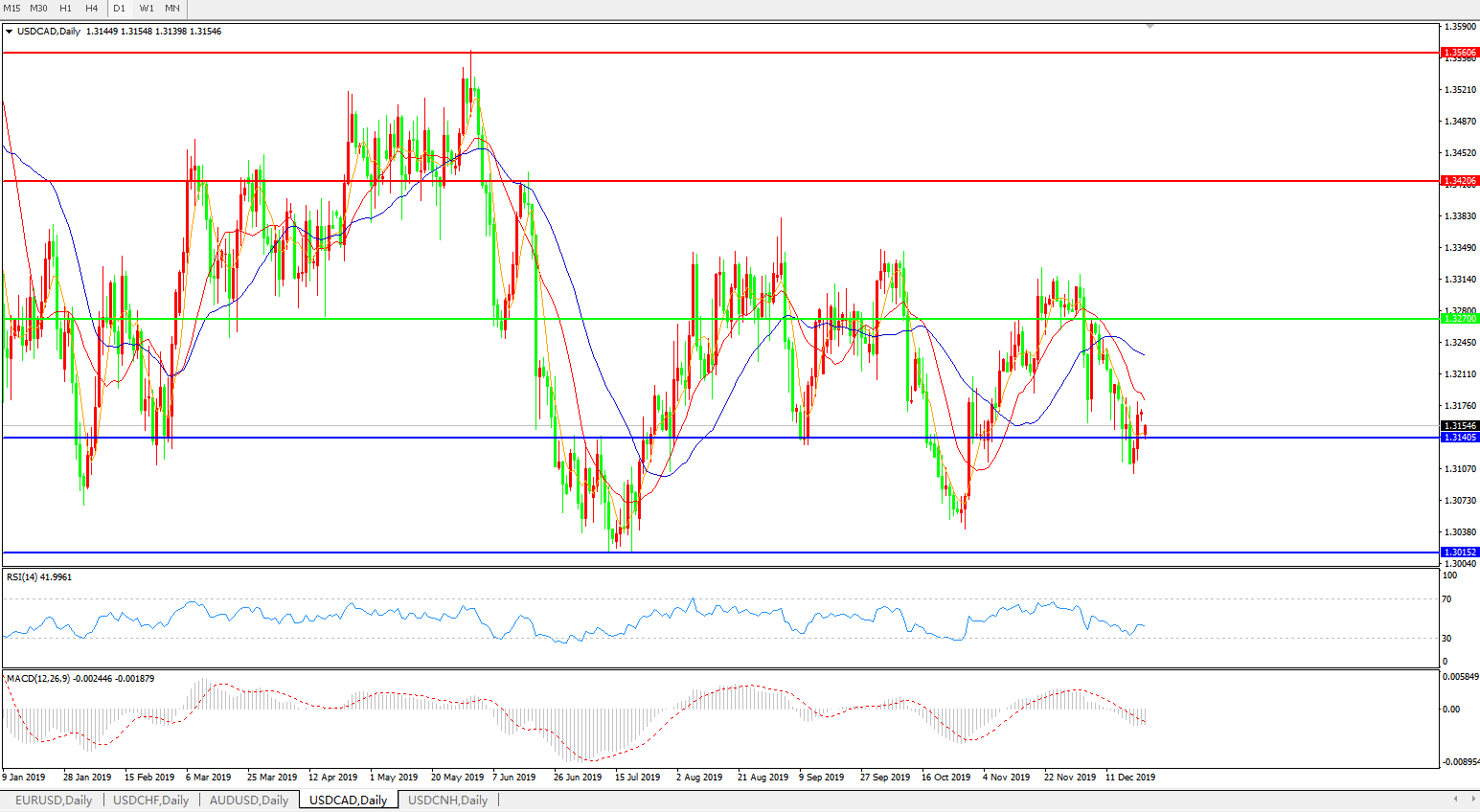 技术面简析:日线图均线呈空头排列,汇价1.3140关口逐步止跌回升,MACD下穿0轴且量能0轴下方微放量,RSI震荡走升,预计汇价短期将小幅反弹,中期存进一步下行空间。