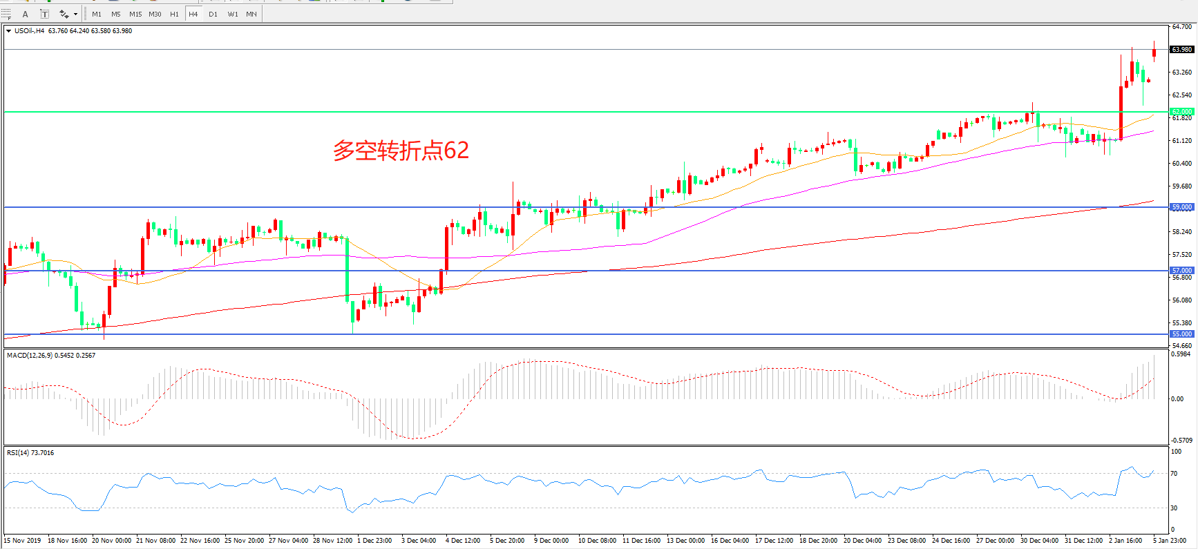 多空转折点:62.00